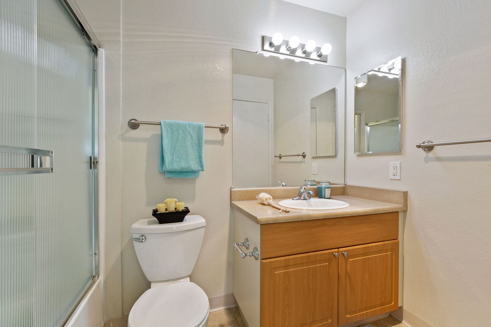 • Well-appointed bath(s) with vanity, chrome plumbing fixtures and easy-care tub/shower surround with glass enclosure