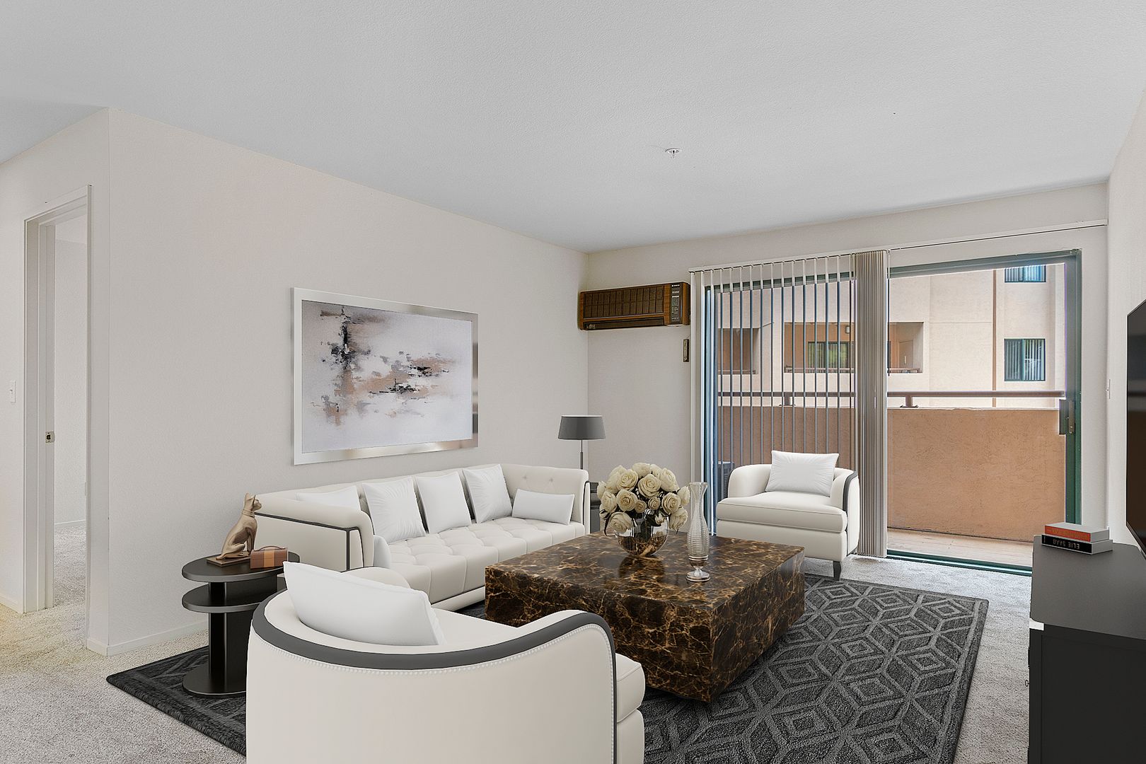 • Sliding glass doors to private balcony (per unit/floor) with large storage closet